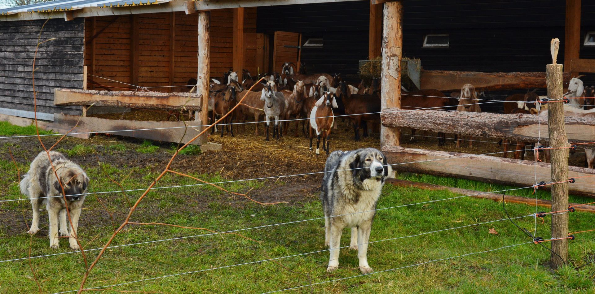 Hier op de Geitehof nemen wij de verantwoordelijkheid om er voor te zorgen dat we onze dieren zo veilig mogelijk houden. Hiervoor hebben wij een 5 ijzerdradig hek rondom de weides geplaatst, en lopen er 24x7 2 KBH's in de kudde. De honden zijn volledig geaccepteerd wat resulteert in zoals hieronder te zien dat de lammeren gewoon bij de honden slapen hoe mooi.